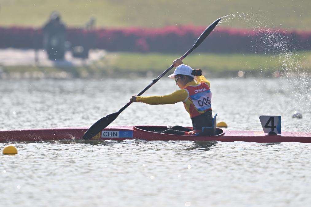 皮划艇是本届亚残运会的新增项目,比赛在杭州亚运会首金诞生地——富阳水上运动中心举行。女子单人皮划艇KL1级比赛中,谢毛三“驾驶”的红色皮划艇格外醒目。在观众的欢呼加油声中,最终她以55秒478的成绩夺得这枚颇具历史意义的金牌——这是亚残运会创办以来,中国队第一次在亚残运会中获得首金。