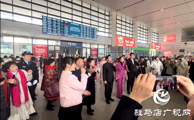 原来这是驻马店市委宣传部策划的“我在天中等你”大型音乐快闪活动。此时正值驻马店两会胜利闭幕之际,也是元宵佳节过后的第一天,驻马店市的许多外出务工者、在外学习的学子们都即将踏上新的旅途。