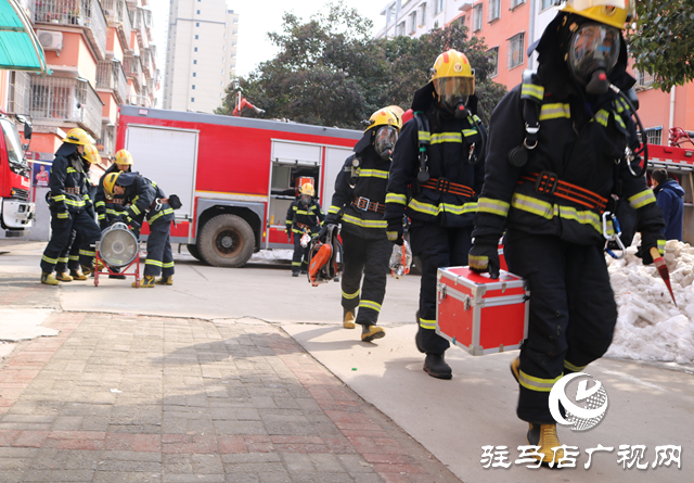 2月27日,驻马店市消防救援支队高新区大队开展灭火救援综合实战演练,努力构筑居民住宅小区消防安全屏障。