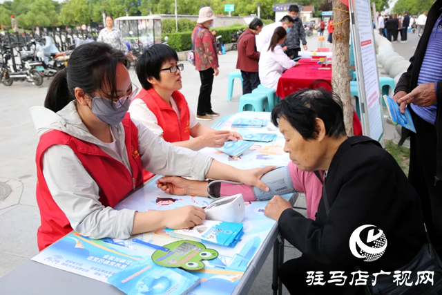 5月15日上午,驻马店市第一人民医院组织医护人员在世纪广场北门开展以“食盐加碘防疾病,平衡营养健康行”为主题的碘缺乏病日义诊宣传活动。