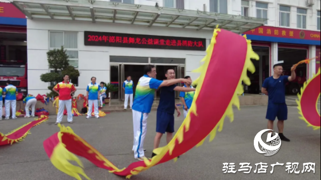 6月18日,泌阳县文联,老年体协组织舞龙活动志愿者走进县消防救援大队开展舞龙健身教学公益课堂活动。