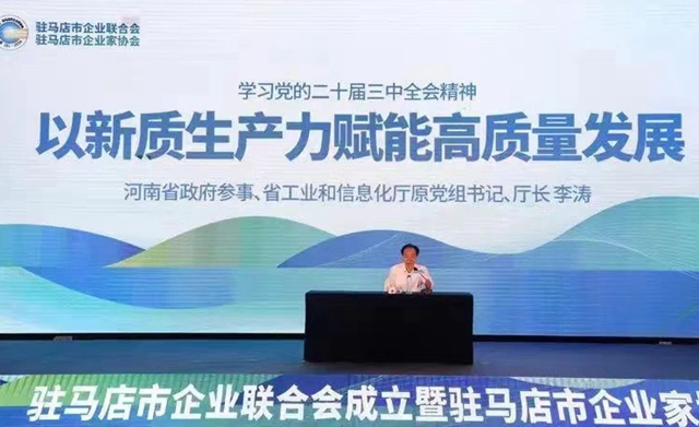 为掀起学习宣传贯彻党的二十届三中全会精神的热潮,推动企业大力发展新质生产力,实现高质量发展,9月25日,驻马店市企业联合会、驻马店市企业家协会联合举行企业和企业家大讲堂,特邀请河南省政府参事、河南省工业和信息化厅原党组书记、厅长李涛以《学习党的二十届三中全会精神 以新质生产力赋能高质量发展》为主题进行授课。