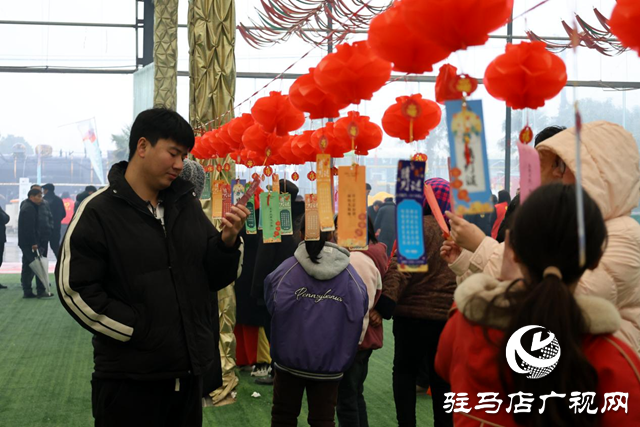 除了“村晚”主舞台外,现场还设置了非遗集市和游艺专区。非遗集市里设了腊鱼、腊鹅、非遗产品、有机蔬菜等年货摊位,也展示了省级非遗项目“扁担戏”和非遗与民间艺术表演,让村民们看得津津有味、连连称赞;游艺专区提供了写春联、做剪纸、猜灯谜等趣味活动,村民们猜出灯谜还能获得小礼品,把在新蔡“过大年”的氛围感拉满。“非常热闹!在我们村办‘村晚’,我们感到非常自豪,也特别高兴,家里老人小孩都来了。过年了,大家一起热热闹闹参加这个活动,有年味、有气氛,希望年年都有这样的活动。”村民张大妈说。