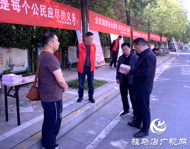 今年4月15日是第十个全民国家安全教育日。为深入贯彻总体国家安全观,增强全民安全意识和法治观念,4月14日,驻马店经济开发区在管委会西侧复兴路开展“国家安全日”主题宣传活动。