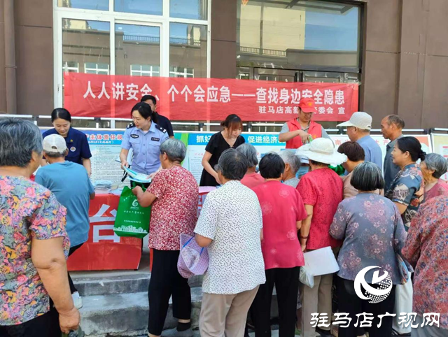 为切实增强居民的安全意识和应急处置能力,营造全社会关注安全的良好氛围,6月27日上午,驻马店高新区安委会组织区综合执法局、区消防大队、金桥办事处等成员单位走进高新区第三安置社区,联合开展了以“人人讲安全、个个会应急--查找身边安全隐患”为主题的“安全生产月”宣传进社区活动。