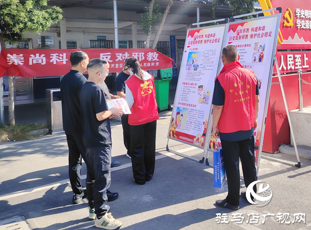 为进一步增强辖区居民防范和抵制邪教的意识,营造和谐稳定的社会环境,8月5日,驻马店经济开发区关王庙乡联合第五人民医院开展“崇尚科学 反对邪教”为主题的反邪教宣传活动,筑牢辖区安全防线。