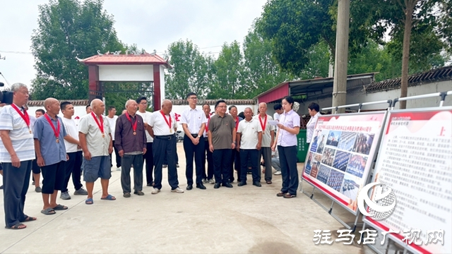 8月25日,上蔡县杨屯乡杨屯村以“讲抗战故事 学身边英雄”为主题开展党日活动,为“光荣在党50年”老党员颁纪念章,通过展抗战史料、讲英雄事迹弘扬抗战精神。