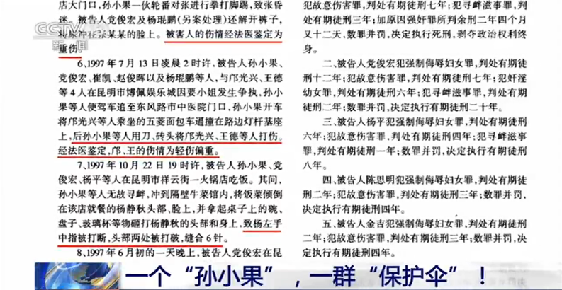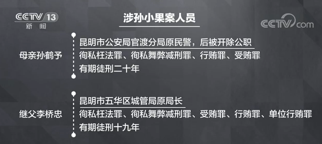 主持人 董倩:人们总说一句话,出来混总是要还的。从孙小果这件案子上就可以看到,虽然他一次次的减刑,但是这一次我们看到宣判他是有期徒刑25年,同样,这个母亲是有期徒刑20年,然后继父是有期徒刑19年。再来看,给他做“保护伞”的除了他父母的之外,那么司法监狱系统的9人,法院3人,公安系统3人,还有企业2人。也都得到了法律应当有的惩罚。那么接下来我们就连线一位嘉宾,来自中央党校政法部的杨小军教授。杨教授,其实有一个问题,恐怕大家都很好奇,就是如果从孙小果的这个父母的这个身份,或者说他们的家庭背景来看,就是普通人,但是问题在于一个普通的家庭,怎么可能把这一路的绿灯都给开好,这么多人心甘情愿的为他们家帮忙。您怎么看?