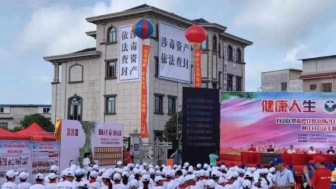今年6月,广西壮族自治区禁毒严打整治暨2019年全民禁毒宣传月柳江分会场活动在柳州市柳江区成团镇鲁比村举行,本次活动的地点就设在张加爱的豪华别墅旁,现场这栋涉毒别墅被查封。