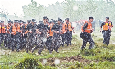 由于水势太大,分不清哪里是道路,哪里是沟壑,而且部分官兵刚从2000公里外的河南某地移防过来,不熟悉地形……