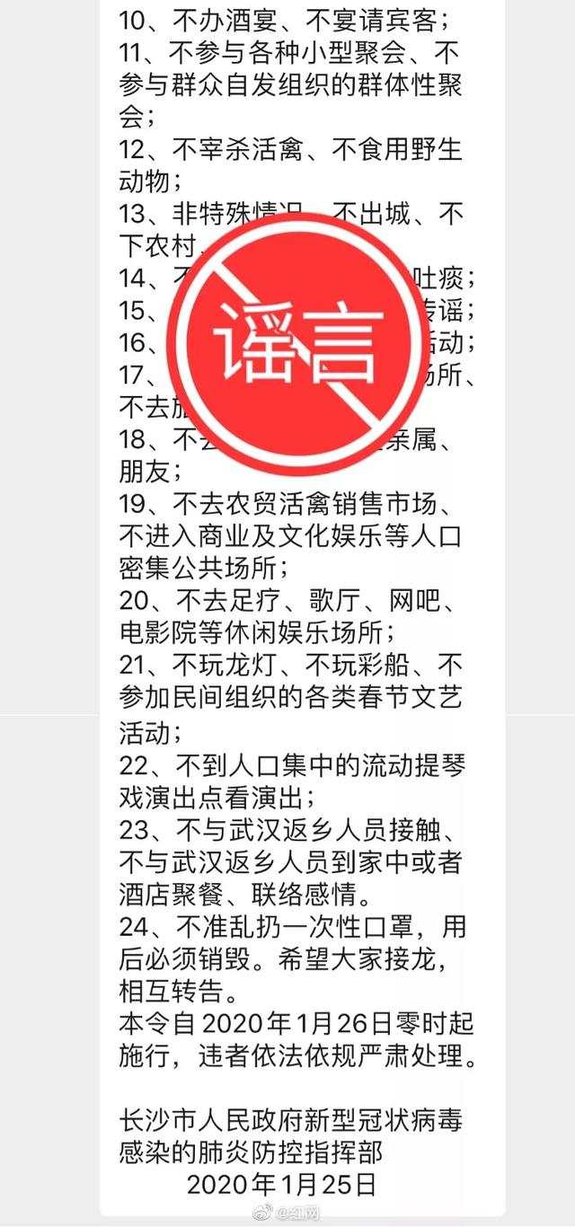 谣言十一:关于新型冠状病毒肺炎“长沙第1号令”
