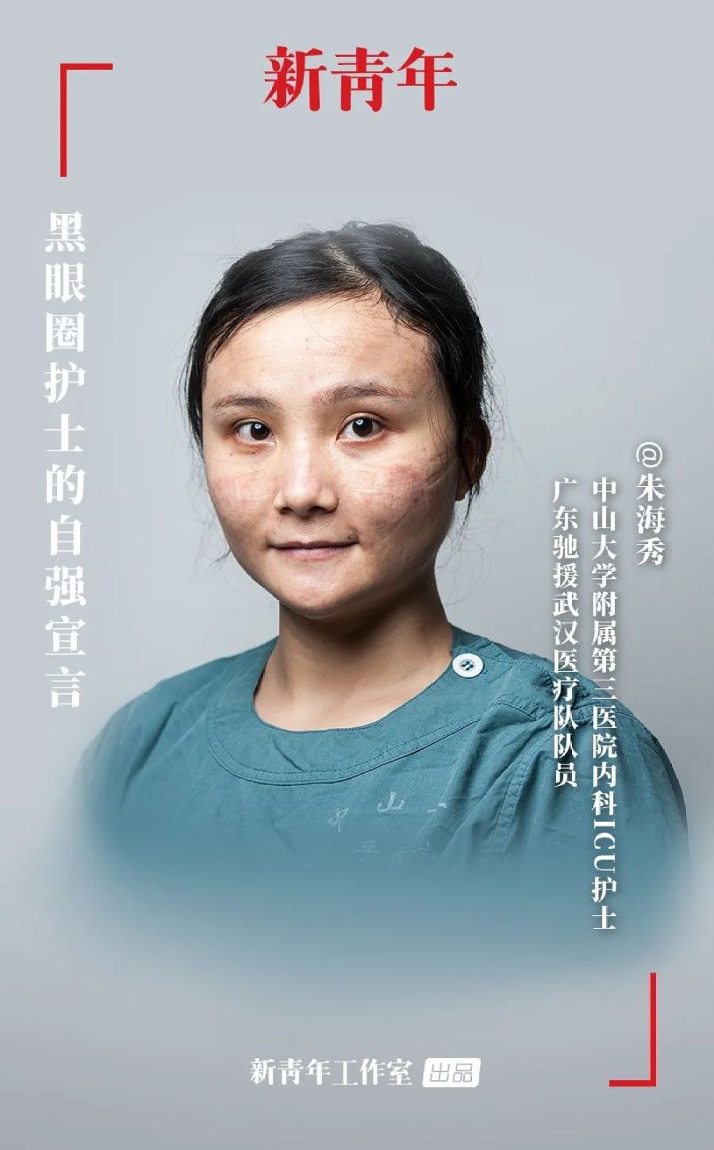 大家好,我是新青年朱海秀,是来自于中山大学附属第三医院内科ICU的一名护士,现跟随广东医疗队支援武汉市汉口医院。