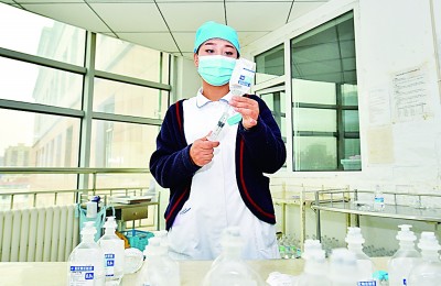 5月11日,曾前往武汉抗击疫情的吉林省长春市人民医院呼吸内科护士李京为给患者注射做准备。新华社记者林宏摄