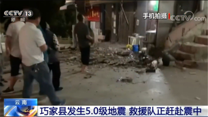 据了解,地震发生时,昭通市巧家县、鲁甸县、昭阳区震感明显,在当地一家超市,货架上的物品被震落一地。而在群众手机拍摄的画面可以看到,部分房屋开裂,屋顶房檐砖瓦掉落,有些地方水管爆裂,一些山路有碎石坠落路面。