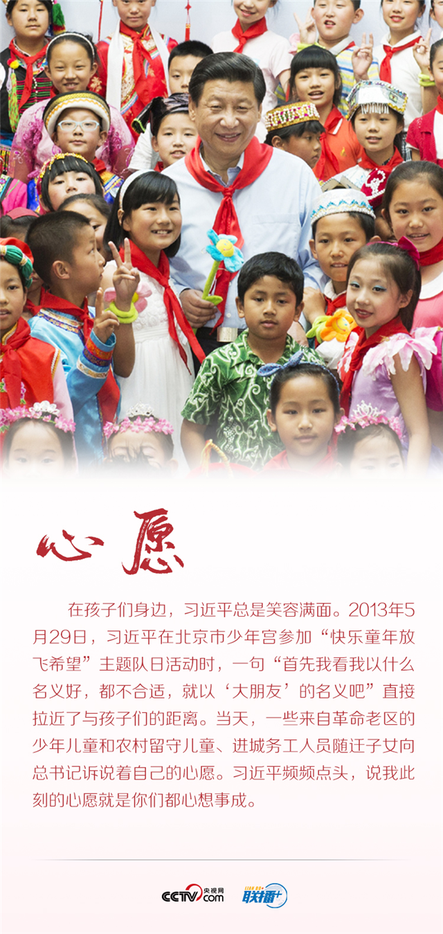 习近平总书记一直心系孩子们的成长和未来。他说自己是孩子们的“大朋友”;对他而言,“孩子们成长得更好”是“最大的心愿”;他在冰球场上与孩子撞肩打招呼,在校园里和孩子们分享人生感悟……