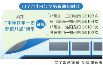 6月24日,记者从中国铁路郑州局集团有限公司获悉,7月1日零时起,全国铁路实施三季度列车运行图。调图后,该公司将新增旅客列车9对、变更运行区段13.5对、改经由6对、改等级2对。