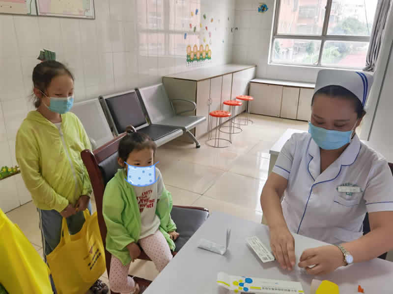 5岁的童童(中)成为全国接种鼻喷流感减毒活疫苗的第一人