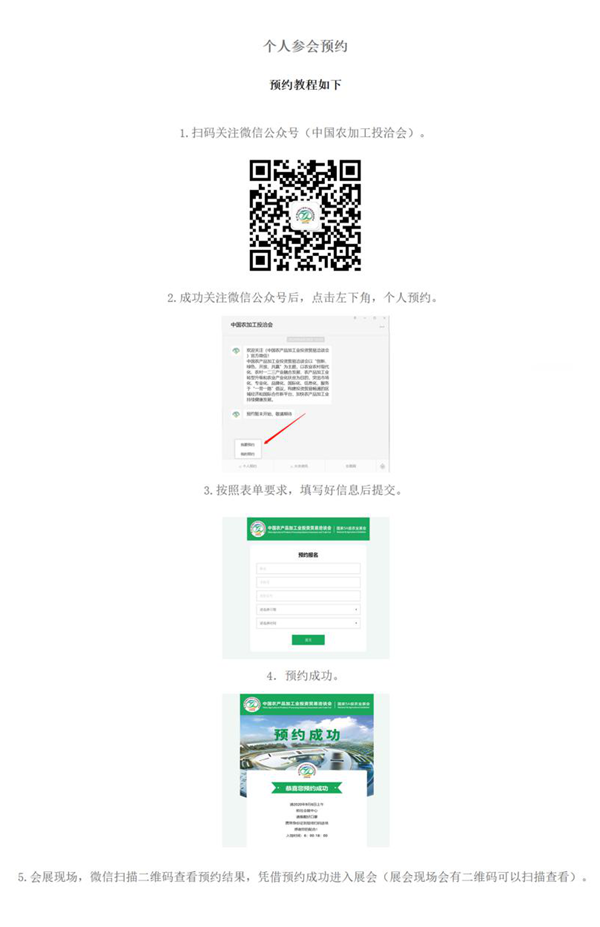 请先通过“中国农加工投洽会”微信公众号-个人预约入口进行观展预约,按照流程,文明参展,佩戴口罩,按照指示入场,感谢配合。