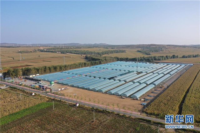 内蒙古兴安盟科尔沁右翼前旗居力很镇扶贫产业园(9月30日摄,无人机照片)。 新华社记者 刘磊 摄