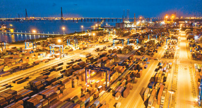 10月5日,江苏南通通海港口车来船往,一派繁忙作业景象。