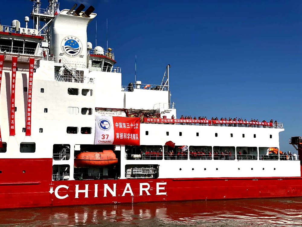 11月10日,由自然资源部组织的中国第37次南极科学考察队乘坐“雪龙2”号极地科考破冰船从上海起航,奔赴南极执行科学考察任务。新华社发(中国极地研究中心供图)