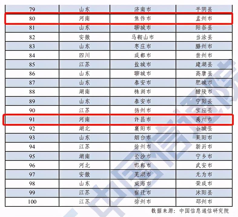 同日发布的2020年中国创新百强县(市)榜单中,河南上榜的4个县(市)有3个隶属于许昌,分别是排名第52位的襄城县,排名第67位的长葛市,排名第91位的禹州市,此外上榜的还有排名第80位的焦作孟州市。