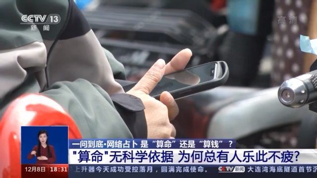 北京大学心理与认知科学学院副教授 张昕:网上和在线下形式的这种算命,其实他们都是一样的,都是为了去满足来算命的人,他的一些心理上的需求。我们心理学当中有概念叫掌控感,是对于不确定性的一个规避。我们的很多的情感,或者说我们的很多的这种生活的压力,就来自于对未来的不确定性。