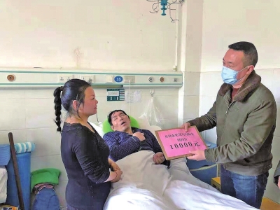 本报讯1月8日上午,开封市见义勇为协会秘书长赵辉,禹王台区见义勇为协会张斌理事长,李新奇副理事长,来到开封市中心医院慰问见义勇为的英雄赵进前,并送来1万元慰问金。