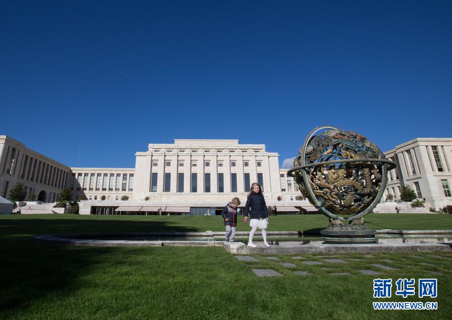 这是2017年10月7日拍摄的瑞士日内瓦的联合国万国宫的外景照片。新华社记者 徐金泉 摄