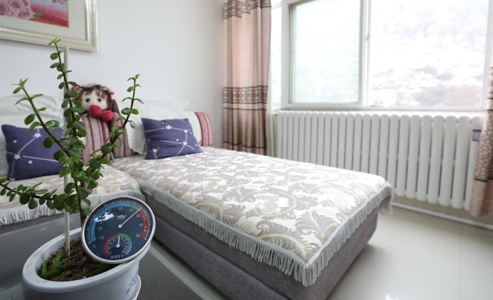 1月24日,孔家沟村民任贵平儿媳妇蒋艳的三居室屋内室温达到25摄氏度。 新华社记者陈昌奇 摄