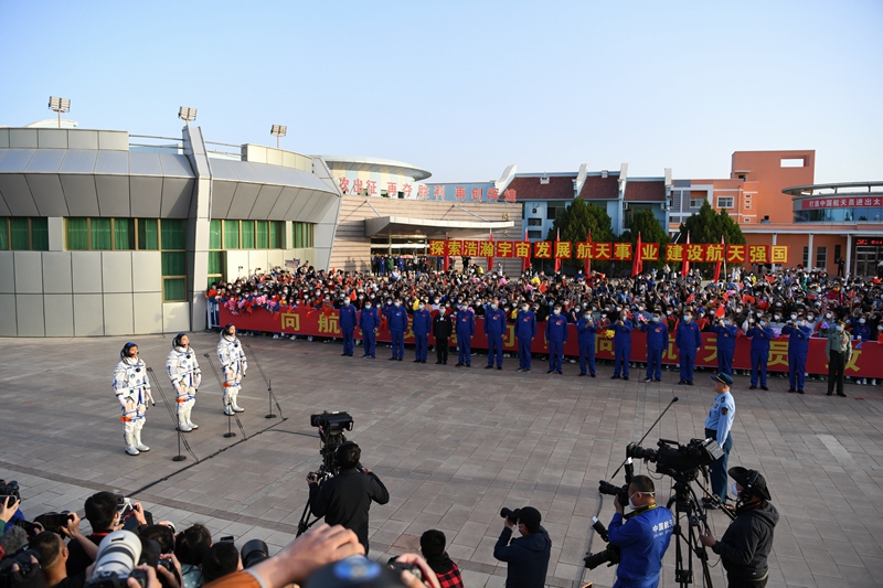 神舟十六号3名航天员领命出征。人民网记者 翁奇羽摄