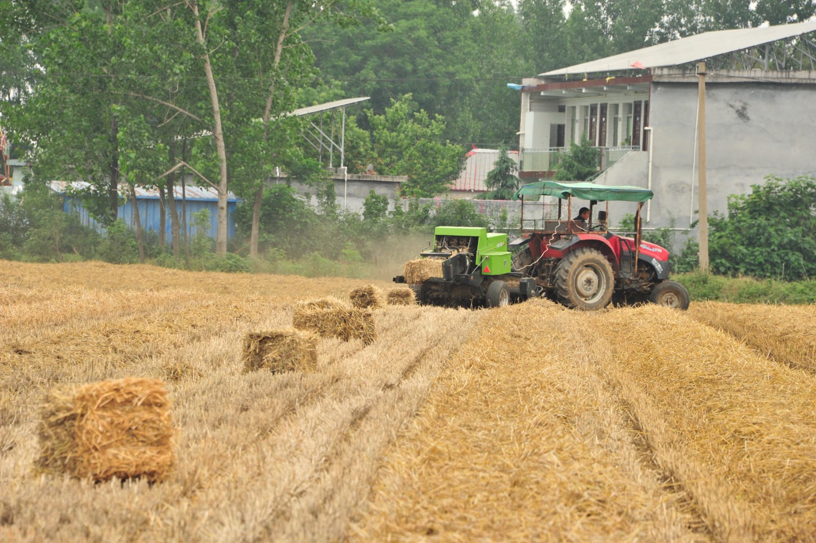 5月31日,在南阳市社旗县陌陂镇,打捆机在田间作业。武亚东 摄