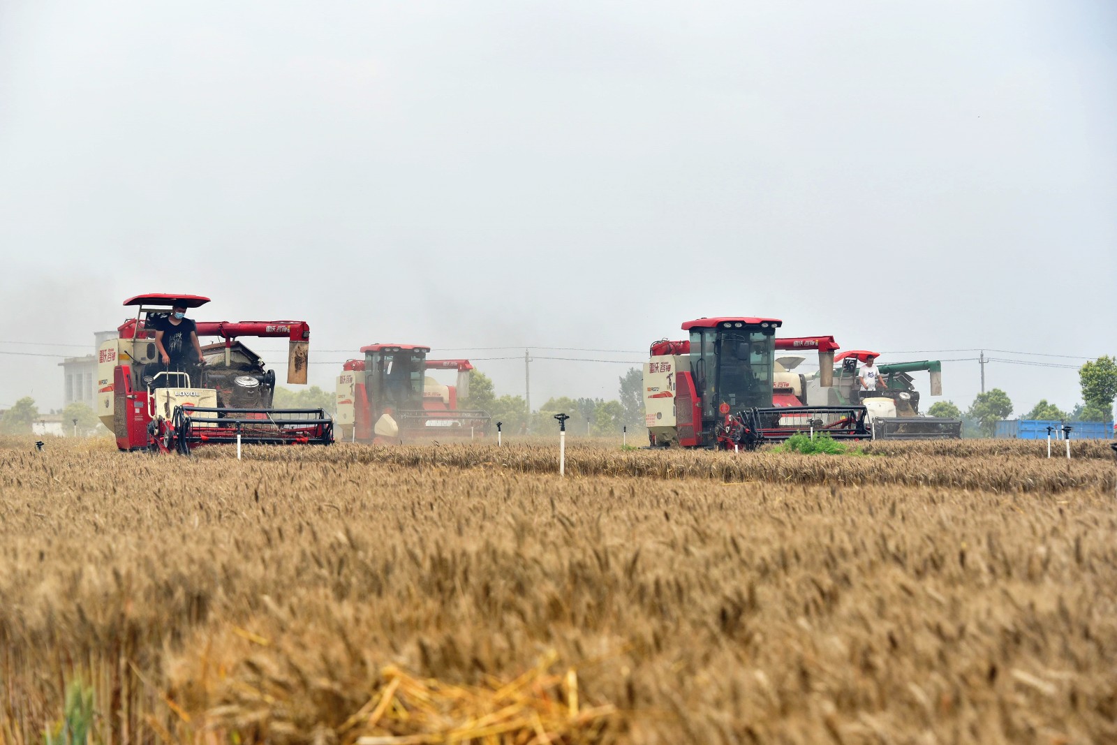 5月30日,在南阳市社旗县苗店镇八里苗村,当地正组织联合收割机抢收小麦。薛小磊 申鸿皓/文图