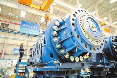 许继集团员工正在风电产品生产线上忙碌。近年来,许继集团加快重大装备攻关,助力绿色发展。乔利峰摄