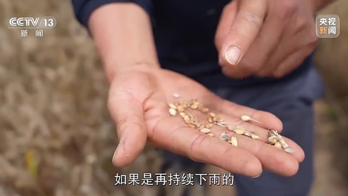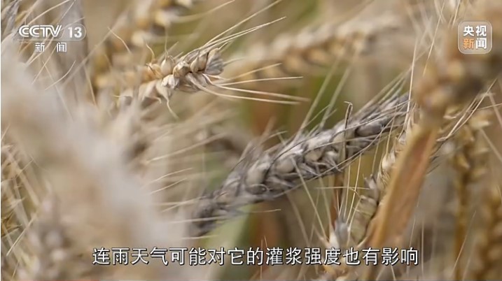 农业农村部小麦专家指导组成员毛凤梧:进入成熟期的小麦,如果遇到连续三天以上的阴雨天气,小麦籽粒就会吸收比较充分,有水分了,水分条件具备了,它就有可能在穗上发芽。
