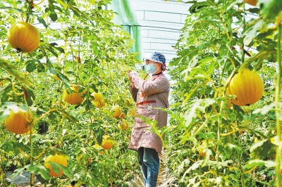“这是吊蔓西瓜,现在一斤售价在六七元,主要销往北京、上海等地,一亩地能收入3万元左右。”农场负责人孙建国说,他种植西瓜3年多,承包了50亩地,从传统的“8424”西瓜品种到现在的吊瓜,品种越来越多,市场越来越广,收入也日渐攀升。