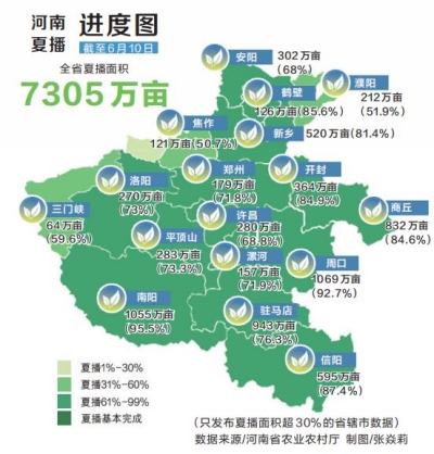 夏粮归仓,秋粮抢种,近几日全省天气持续晴好,大部分地块土壤墒情充足,夏收接近尾声,夏播进度持续加快。截至目前,全省夏播面积7305万亩,占预计面积的80.3%。