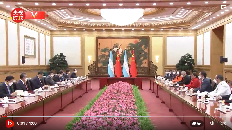 6月12日下午,国家主席习近平在人民大会堂同来华进行国事访问的洪都拉斯总统卡斯特罗举行会谈。