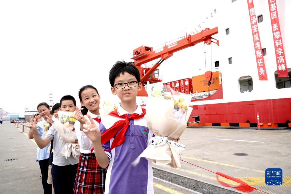 9月27日,小朋友们在码头欢迎中国第13次北冰洋科学考察队凯旋。