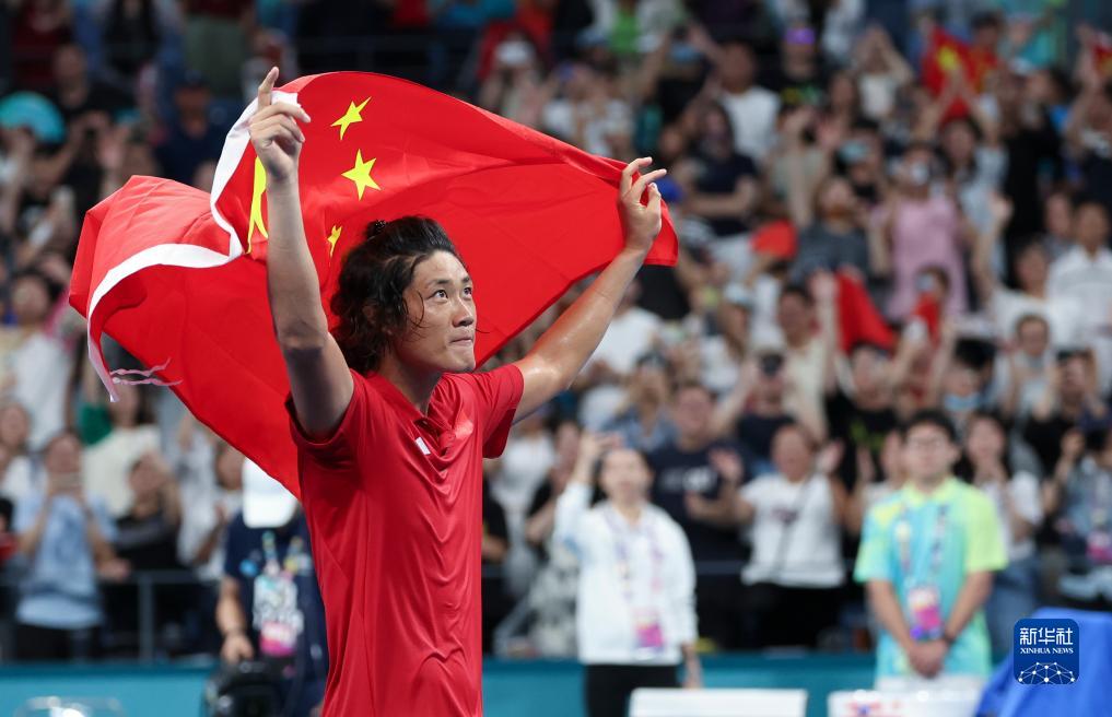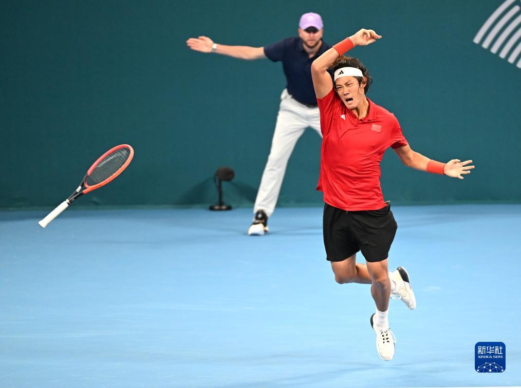 当日,在浙江杭州奥体中心网球中心进行的杭州亚运会网球男子单打决赛中,中国选手张之臻以2比0战胜日本选手绵贯阳介,夺得冠军。