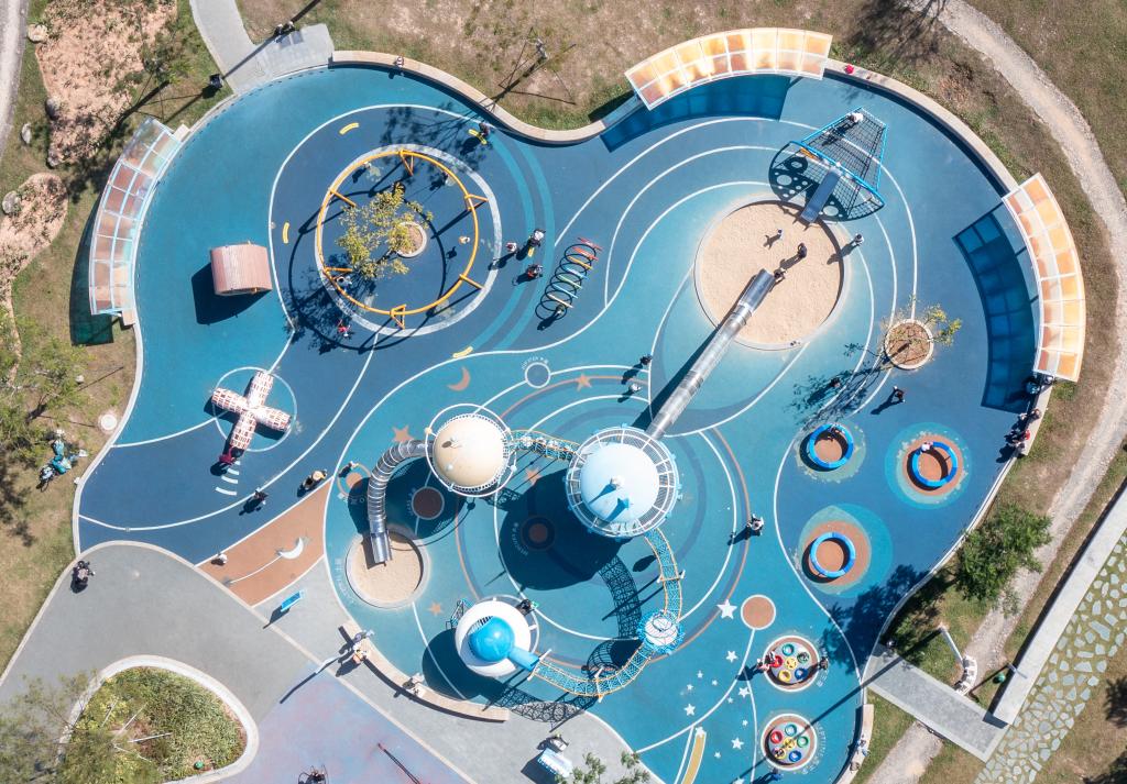 11月17日,家长带着儿童在深圳北站中心公园的星球主题乐园玩耍(无人机照片)。新华社记者 毛思倩 摄