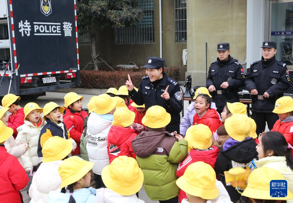 1月9日,在山东省临沂市郯城县公安局举行的警营开放日活动上,小朋友在聆听安全常识讲解。