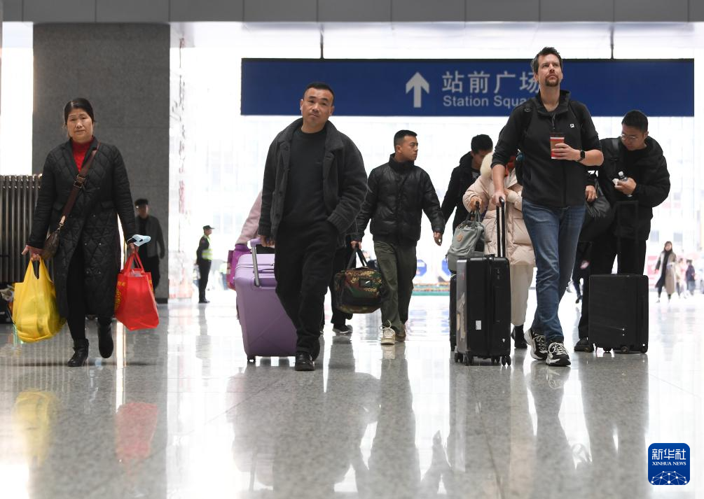 2月17日,旅客在南京火车站下车出站。