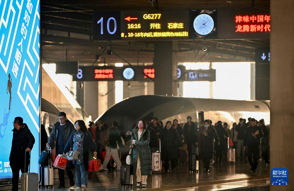 2月17日,旅客乘车到达天津西站。