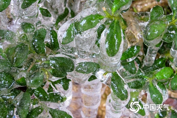 2月24日,湖南省衡阳市持续低温,户外的植物披上厚厚“冰甲”。(汪普林 摄)
