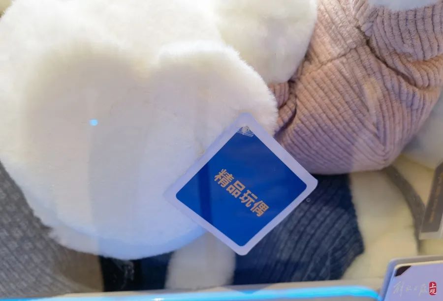 在那些见缝插针安放的娃娃机里,娃娃的质量同样参差不齐。比如,在旭辉里商场一处通道的3台娃娃机中,一台娃娃机里的娃娃“身份信息”齐全,另一台里娃娃挂着“精品玩偶”的标签,但标签另一面并没有生产信息,只有安全提示;剩下的一台机器里是“三无”娃娃。