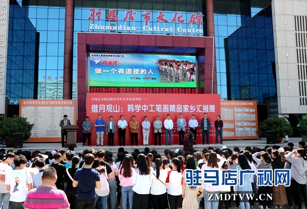 【驻马店广视融媒讯】(记者 武帅)5月3日上午,由河南省美术家协会、中共驻马店市委宣传部、市文广新局、市文联主办的“借月观山:韩学中工笔画精品家乡汇报展”在市文化馆开幕。市委常委、宣传部长戚存杰出席开幕式并宣布画展开幕。