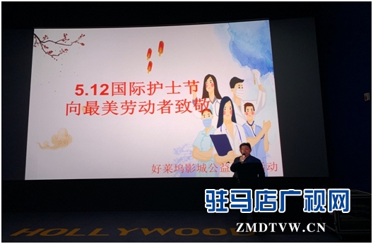 驻马店广电融媒体消息:5月12日,是国际护士节,热心公益活动的驻马店好莱坞影城在护士节来临之际,向驻马店市骨科医院的医护工作者送上节日的祝福,并在爱家百货店特意安排护士节专场电影,邀请医护工作者免费观看。