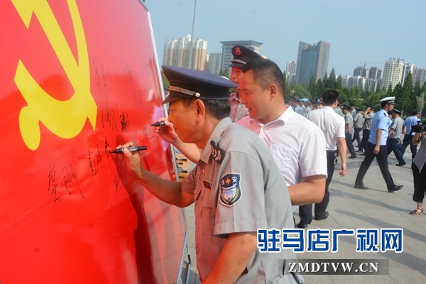 驻马店广电融媒体消息:7月24日上午,以“不忘初心跟党走、牢记使命勇担当”为主题的“全市保安主题宣传日活动暨保安行业服务国庆安保工作启动仪式”和“党员保安签名”活动在市天中广场正式拉开帷幕。市公安局特警支队、市治安支队相关负责人及市公安机关保安监管民警,各保安企业负责人及广大保安员600余人参加了此次启动仪式。