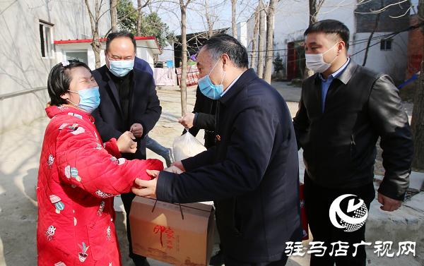 2月20日,驻马店市残联理事长张银良,驻马店开发区党委书记、管委会主任史爱民一行带着各类果蔬等生活物资看望慰问脱贫残疾人家庭和困难老党员、志愿军老战士家庭。